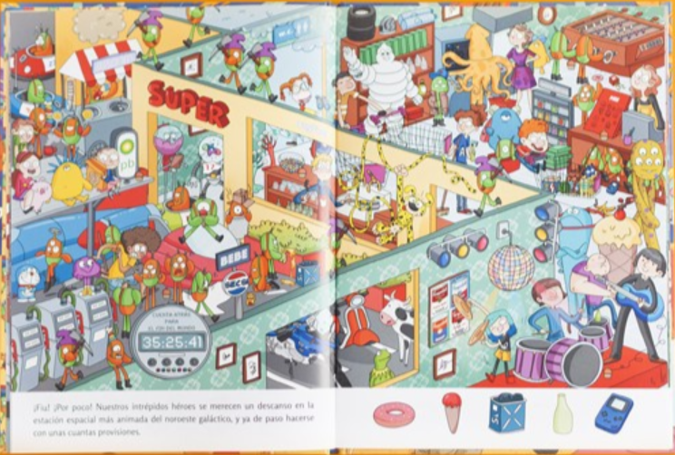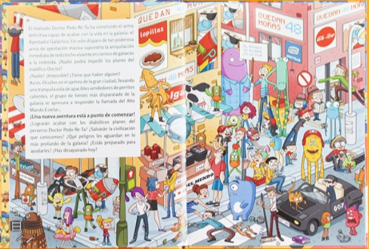 Dos héroes dispuestos a todo que tendrán que salvar el mundo con la ayuda de... ¡un calamar! Bueno, un calamar y los lectores. En cada página habrá que encontrar cinco objetos para ayudar a los héroes a acabar con los maléficos planes del Doctor Pedo-re-ta, y así mantener viva a la especie humana. En el camino se encontrarán con todo tipo de bichos espaciales, de artefactos peligrosos e incluso con algunas reliquias casi olvidadas...